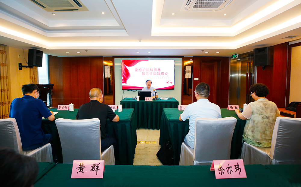 6月21日下午,在健康管理中心迎暉廳,所黨委書記、所長謝敏浩以《黨紀護航科研路 服務健康踐初心》為題,為全所中層及以上干部、部分課題組長講授黨紀學習教育專題黨課,省衛(wèi)生健康委機關黨委、機關紀委董小林同志列席。