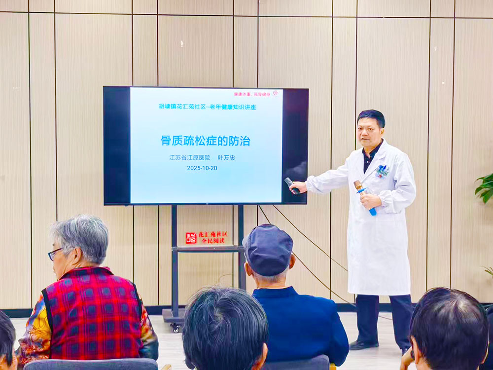 在胡埭社區(qū)衛(wèi)生服務(wù)中心(花匯苑社區(qū)幸福家園)活動現(xiàn)場,骨質(zhì)疏松科葉萬忠主任以《原發(fā)性骨質(zhì)疏松癥的診療》為題開展科普講座,用通俗易懂的語言從病因、危害、預(yù)防措施到治療方法,系統(tǒng)講解骨質(zhì)疏松癥相關(guān)知識,現(xiàn)場互動頻繁、氣氛活躍。講座結(jié)束后,4位骨質(zhì)疏松科專家組成咨詢團(tuán)隊,為有需求的居民提供一對一免費健康咨詢,針對腰背疼痛緩解、規(guī)范用藥指導(dǎo)、康復(fù)訓(xùn)練方案等問題耐心解答,并結(jié)合居民身體狀況給出個性化防治建議。同時,考慮到骨密度檢測是早期發(fā)現(xiàn)骨質(zhì)疏松風(fēng)險的關(guān)鍵,專家們還為骨質(zhì)疏松高危風(fēng)險的居民發(fā)放免費骨密度篩查券,引導(dǎo)大家通過科學(xué)檢測了解自身骨量情況,提前規(guī)避疾病風(fēng)險。此次社區(qū)服務(wù)為居民提供了專業(yè)的健康指導(dǎo),獲得現(xiàn)場群眾一致好評。